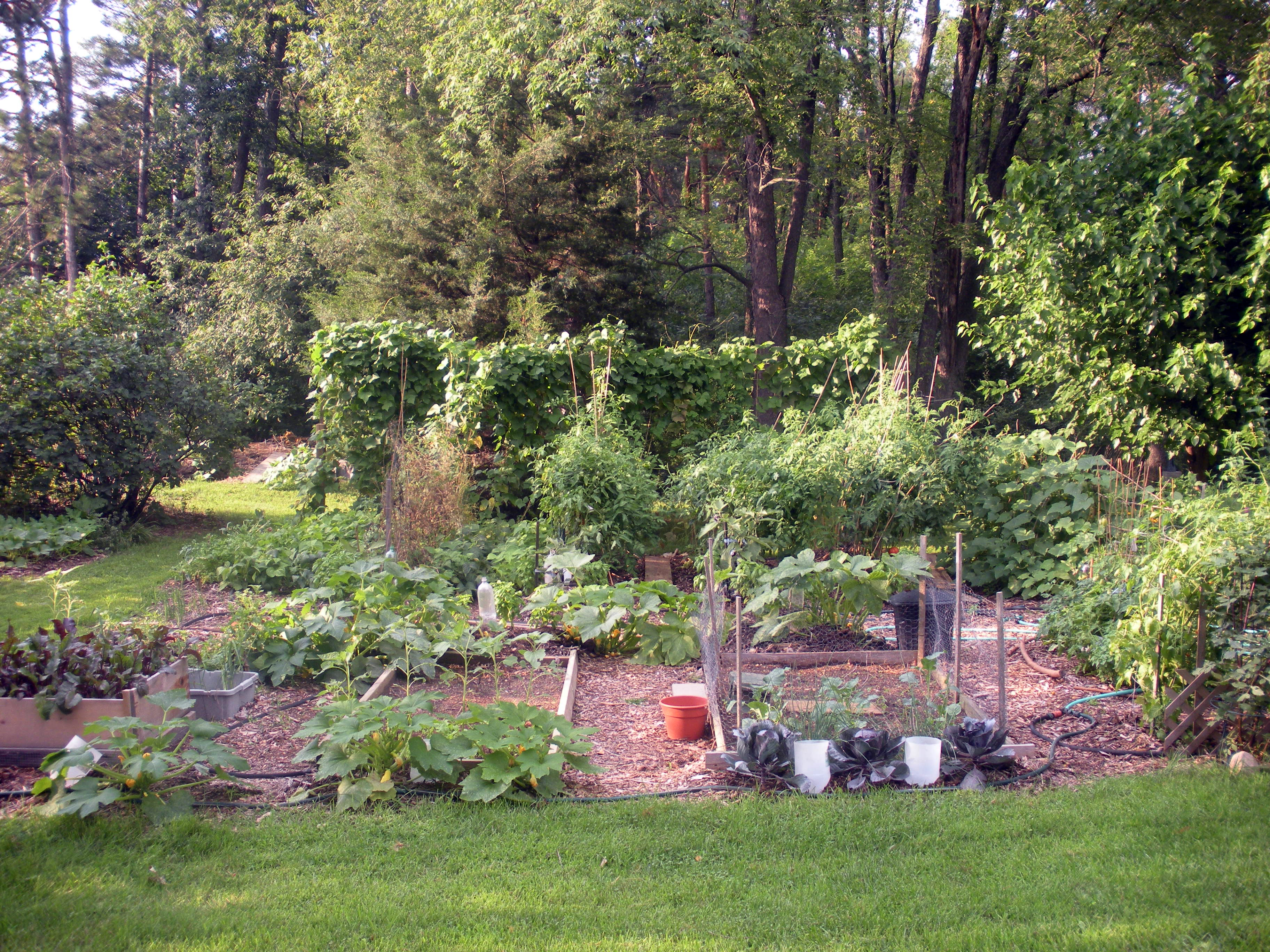 The patch produces a variety of vegetables including lettuce, spinach, cabbages, beets, parsnips, summer and winter squash, peas, pole beans, tomatoes, eggplants and peppers. I also grow annual and biennial culinary herbs such as basil, parsley, cilantro, and garlic. Perennial herbs such as sage, thyme, and oregano are located in their own garden outside of the veggie patch.